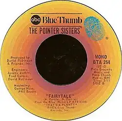 "Fairytale" is a song introduced on the Pointer Sisters' May 1974 album release That's a Plenty; written by group members Anita Pointer and Bonnie Pointer, "Fairytale" became the second of the three Top 40 hits scored by the Pointer Sisters in their original embodiment as a quartet – Anita Pointer sang lead on all three of these hits.