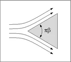 In fluid dynamics, the Falkner–Skan boundary layer (named after Victor Montague Falkner and Sylvia W. Skan[1]) describes the steady two-dimensional laminar boundary layer that forms on a wedge, i.e. flows in which the plate is not parallel to the flow. It is also representative of flow on a flat plate with an imposed pressure gradient along the plate length, a situation often encountered in wind tunnel flow. It is a generalization of the flat plate Blasius boundary layer in which the pressure gradient along the plate is zero.
