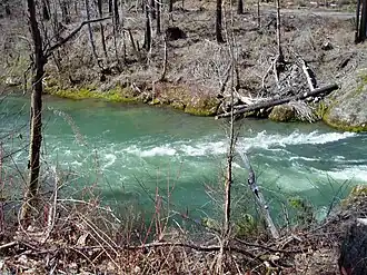 Campgrounds are found at intervals along the Fall Creek National Recreation Trail and Forest Road 18. These include Dolly Varden,[10] Big Pool,[11] Broken Bowl,[12] Bedrock,[13] and Puma.[14] Clark Creek Organization Camp, built by the Civilian Conservation Corps in the 1930s, has sites for group camping.[15]