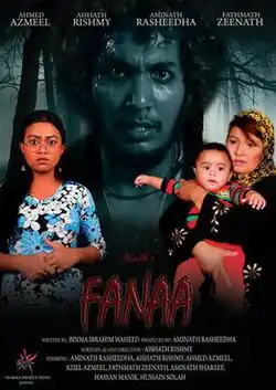 Fanaa (transl. Destroyed) is a 2010 drama film directed by Aishath Rishmy. Produced by Aminath Rasheedha under Yaaraa Productions, the film stars Rasheedha, Rishmy and Ahmed Azmeel. The film was released on 14 July 2010. It is the second film from Yaaraa Productions after 2006's horror film Hukuru Vileyrey. It is Azmeel's first appearance in a feature film.[1] It was based on a novel published by Ibrahim Waheed titled Balgish.