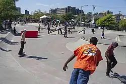 Far Rockaway Skate Park is a public skate park on the Rockaway Beach and Boardwalk in Far Rockaway, Queens, New York City, opened in 2011.[1][2][3][4] The park is open dawn till dusk and is unsupervised.[5] In addition to skateboarding, scooters and inline skates are permitted.[5] The park was built over a large parking lot that was reduced in size but not eliminated.[6] The skatepark project was part of a larger renovation of O'Donohue Park that began in 2010 and was completed in 2011.[6] The park was designed by SITE Design Group and built by California Skateparks.[2]
