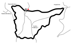 The Feldbergrennen took place annually in 1920–1928, 1934–1936, and 1950–1954, in various motorcycle and automobile classes. In 1921, the route began at the point called "Hohe Mark" and ended at the point called "Sandplacken". From 1921 until 1935, the length of the route remained at 8.45 km (5.25 mi). Since 1935, the circuit was increased by 3.2 km (2 mi), reaching a total of 11.67 km (7.25 mi) in length.