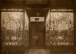 Kuhn was president and treasurer of the Kuhn, Cooper, Geary & Company shoe store, founded in 1903 with Ed P. Cooper and P. J. Geary.[39][40][41] The store was located on North Summer Street (Fifth Avenue North), Nashville.