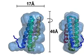 - ^ a b c Harsini FM, Chebrolu S, Fuson KL, White MA, Rice AM, Sutton RB (July 2018). "FerA is a Membrane-Associating Four-Helix Bundle Domain in the Ferlin Family of Membrane-Fusion Proteins". Scientific Reports. 8 (1) 10949. Bibcode:2018NatSR...810949H. doi:10.1038/s41598-018-29184-1. PMC 6053371. PMID 30026467.