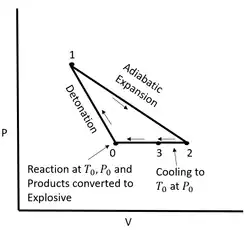 - Adiabatical expansion: The gaseous detonation products return to a final pressure equal to the initial pressure, Ρ0.