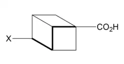 - ^ a b c d e Cole, Thomas W.; Mayers, Carolyn J.; Stock, Leon M. (1974). "Chemistry of the bicyclo[2.2.2]octanes. XV. Dissociation constants of 4-substituted cubane-1-carboxylic acids. Evidence for the field model for the polar effect". Journal of the American Chemical Society. 96 (14): 4555–4557. Bibcode:1974JAChS..96.4555C. doi:10.1021/ja00821a032. ISSN 0002-7863.
