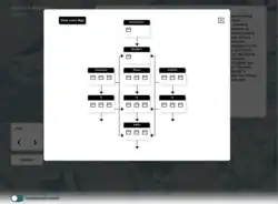 The "Map" function, originally a feature of Storyspace, enables the reader to navigate the text by clicking through a graphical representation of the structure, where text passages are represented by nested rectangles and links are shown with arrows. This functionality has been recreated for the web in the 2021 edition.[10]