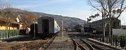 The track is a standard gauge railroad constructed in 1887 by Southern Pacific Railroad through the Santa Clara River Valley in Ventura County, California. This line was originally part of the Southern Pacific's main line between San Francisco and Los Angeles before the shorter Montalvo Cutoff was built through the Santa Susana Mountains in 1904. State Route 126 follows roughly the same route from Ventura to Santa Clarita. The track was used extensively by Southern Pacific as late as the 1950s to haul citrus from packing houses at the communities along the Santa Clara River. In 1995, the branch line that connects at its west end to the Union Pacific at Montalvo in Ventura was purchased from Southern Pacific by the Ventura County Transportation Commission.[2] The eastern end of the line terminates in Piru as storm damage in 1979 severed the eastern end of the line to Saugus in Los Angeles County.