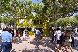 FiraTàrrega (also Fira de Teatre al Carrer de Tàrrega) is the international market[1] for performing arts that takes place every year in Tàrrega during the second weekend in September. Founded in 1981, it is a great shop window of what is going on in performing arts, with special emphasis on street arts, visual and unconventional shows. As a meeting place and an international point of reference for debate, the main objective of FiraTàrrega is to boost the performing arts market, opening the door to the internationalisation of the companies. Other more specific objectives are the accompaniment and promotion of creations by emergent artists, encouraging training, focused on artistic creation and culture management and on generating strategic alliances to develop transnational street art circuits or productions.