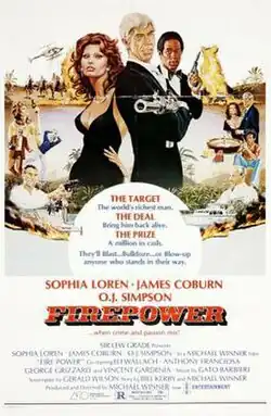 Firepower (aka Fire Power) is a 1979 British action-thriller film directed by Michael Winner and starring Sophia Loren, James Coburn, O. J. Simpson and Eli Wallach.[3][4] It was the final film in the career of actor Victor Mature. The film was poorly reviewed by critics who objected to its convoluted plot, though the lead performances and filming locations were generally praised.[5]