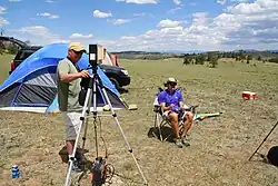 First-person view (FPV), also known as remote-person view (RPV), or video piloting, is a method used to control a radio-controlled vehicle from the driver or pilot's viewpoint. Most commonly it is used to pilot a radio-controlled aircraft or other type of unmanned aerial vehicle (UAV) such as a military drone. The operator gets a first-person perspective from an onboard camera that feeds video to FPV goggles or a monitor.[1][2] More sophisticated setups include a pan-and-tilt gimbaled camera controlled by a gyroscope sensor in the pilot's goggles and with dual onboard cameras, enabling a true stereoscopic view.