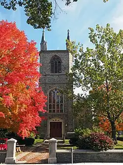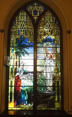 The church has a Tiffany stained glass window.