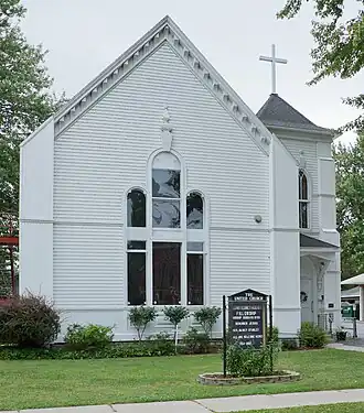 First Presbyterian Society of Cape Vincent, also known as the United Church of Cape Vincent, is a historic Presbyterian church located at Cape Vincent, Jefferson County, New York. It consists of a main block (1832), wood-framed narthex and tower (1884), and meeting hall (1959). The main block is a 1+1⁄2-story, Federal style limestone structure. The 2+1⁄2-story narthex has Gothic Revival style design elements. The main block was extensively rehabilitated in 1882, 1892, and 1914.[2]: 5, 7