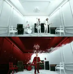It begins with a shot of the band in a white room wearing all white clothes and playing all white instruments. As the energy of the song gets stronger, the white room and the band's clothing changes from white to a ruby red. According to Monsters and Critics, the vibrant colors in the music video show how passion explodes inside of people when they are in love for the first time. One couple gets tattoos for the first time, while another guy is seen teaching his girlfriend how to skateboard. After that, another couple is seen falling in love on a beach and a real life husband and wife embrace after the husband returns from the military.[23]