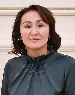 First Lady (Kyrgyz: биринчи айым, romanized: birinçi ayım) or First Gentleman of Kyrgyzstan is the title attributed to the spouse of the president of Kyrgyzstan.[1][2] The current first lady is Aigul Japarova, the wife of President Sadyr Japarov. To date, there has been no official first gentleman of Kyrgyzstan. The country's first female president, Roza Otunbayeva, was divorced during her presidency.
