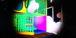 Unlike previous iterations where Freddy is a prominent antagonist, in Security Breach, Freddy helps the player evade the other animatronics and features a stomach compartment that the player is able to hide in. However, as a result of malfunctions, Freddy can run out of power and must be recharged, forcing the players to fend for themselves.[2][5] A variety of different tools are available to the player besides Freddy, such as a network of security cameras accessible via the players' watch, weapons such as the "Fazerblaster" —a laser gun with unlimited ammo— and the "Faz Cam" —a camera-like stun device— as well as environmentally based ways to deterring the animatronics, such as knocking over objects to create noise that lures away animatronics.[2] When the time reaches 6:00 a.m., the player is able to leave the Pizzaplex and complete the game, with the ending the player receives being dependent on how much of the Pizzaplex they explored.[2][3]