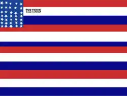Prior to West Virginia's separation from Virginia on June 20, 1863, pro-Union supporters in western Virginia created unique flags to show their support for the Union cause. In January 1861, the residents of Kingwood erected a flagpole measuring about 105 feet (32 m) in height, and on it they hoisted a handmade streamer with the word "UNION" prior to Virginia's secession.[6] During the war, western Virginia regiments in the Union Army carried flags handmade by supportive women, as was the case with the Fifth Regiment Virginia Volunteer Infantry who carried a flag bearing the legend "5th Va. Regiment" in 1861.[7]