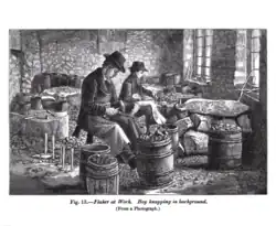 An 1879 illustration showing Brandon gun flint knappers at work