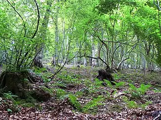 The oak grove of Quercus robur, (common oak) develops in Cantabria up to 1000 meters of altitude. In these formations there are also ash trees (Fraxinus excelsior), lime trees (Tilia spp.) or chestnut trees (Castanea sativa) and a large number of shrubs such as holly (Ilex aquifolium), blackthorn (Prunus spinosa) or hazel (Corylus avellana). In the understory, various species of ferns (Dryopteris spp., Polystichum setiferum) and numerous herbaceous species such as hellebore (Helleborus viridis) or dog's mercury (Mercurialis perennis) are common.