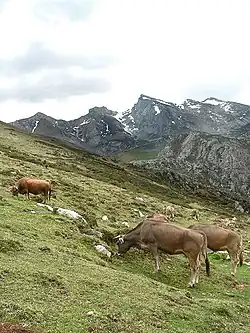 The high mountain pastures, called brañas, constitute the climatic vegetation in the highest areas of Cantabria, which are adapted to situations of very prolonged snowfall, and whose floristic composition is highly dependent on the substratum. They cover the natural passes that form between the great masses of rock that occupy the altitudinal ceiling of the region. They are generally accompanied by shrub thickets, typical of the Cantabrian mountains (heather, gorse and broom).