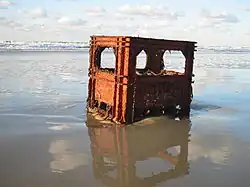 In maritime law, flotsam, jetsam, lagan, and derelict are terms for various types of property lost or abandoned at sea. The words have specific nautical meanings, with legal consequences in the law of admiralty and marine salvage.[1] A shipwreck is defined as the remains of a ship that has been wrecked, whether it has sunk or is floating on the surface of the water.[2]