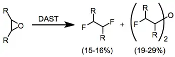 Epoxides may yield a variety of products depending on their structure. Generally, the products that form in highest yield are vicinal difluorides and bis(α-fluoroalkyl)ethers. However, this reaction results in low yields and is not synthetically useful.[12]