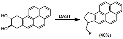 Prior to the introduction of diethylaminosulfur trifluoride (DAST) in 1970 for the replacement of hydroxyl groups with fluoride, sulfur tetrafluoride was the reagent most commonly used to accomplish this transformation. However, sulfur tetrafluoride only reacts with the most acidic hydroxyl groups (its substrate scope is limited), and is difficult to handle, toxic, and capable of generating hydrogen fluoride upon hydrolysis. Thus, aminosulfurane reagents such as diethylaminosulfur trifluoride have largely replaced SF4 as the reagents of choice for replacement of hydroxyl groups with fluoride.[2]