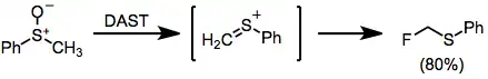 When sulfoxides are treated with DAST, an interesting Pummerer-type rearrangement occurs to afford α-fluoro sulfides.[14]