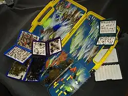 - Accessories - tools, net, waders and apparel used by the fly angler for maintenance and preparation of tackle, dealing with the fish being caught, as well as personal comfort and safety while fly fishing. Includes fly boxes used to store and carry artificial flies.