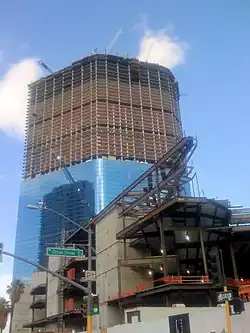 The 67-story hotel tower was topped off on November 14, 2008.[15] Construction had begun before final designs were finished, a common practice for Las Vegas resorts to get them opened sooner. However, this would often result in costly do-over work having to be done. As of mid-2009, there were still areas of the project that had yet to be finalized. Some areas, such as the casino and hotel rooms, had undergone numerous redesigns.[30] Restaurants were among the uncompleted portions of the resort, although many hotel rooms had been finished.[31]