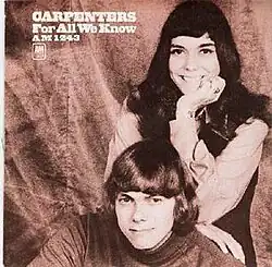 "For All We Know" is a soft rock song written for the 1970 film Lovers and Other Strangers, with music by Fred Karlin and lyrics by Robb Wilson (Robb Royer) and James Arthur Griffin (Jimmy Griffin), both from the American soft rock group Bread. It was originally performed, for the film's soundtrack, by Larry Meredith[1] and won the Academy Award for Best Original Song in 1971.[1]
