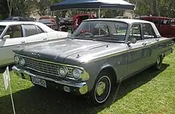 Assembly of the 1963 US Fairlane 500 sedan as the FC model was commenced by Ford Australia in November 1962.[9] It featured a revised bonnet, front guards, grille, headlights, and taillights,[9] and was fitted with the "Ford-O-Matic" automatic transmission as standard equipment , and a 260-cubic-inch (4.3 L) Windsor V8 engine was now offered as an option.[10] The Australian production of the 1963 model totalled 1,771 units.[9]