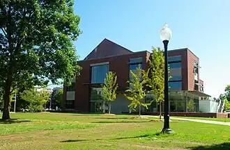 Ford Hall houses a mixture of programs from across departments within the college of liberal arts.[14] The four-story, 42,000-square-foot (3,900 m2) brick-faced building houses programs from rhetoric, computer science, film studies, mathematics, and digital art, among others.[4] This includes recording studios, a film viewing room, and a space for performances in the below-ground level.[4] The first floor of the three above-ground levels includes an art studio and art gallery, while the other two floors contain laboratories, classrooms, and offices for staff.[14] These upper floors also contain what the school labels as hearths, in which each department in the building has one, and which they are designed to encourage collaboration between students as well as between the faculty and students.[4]