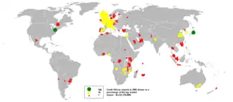 South Africa is the second largest producer of gold in Africa[1] and is the world's largest producer of chrome, manganese, platinum, vanadium, and vermiculite, the second largest producer of ilmenite, palladium, rutile, and zirconium.[2] It is also the world's third largest coal exporter.[3] Although, mining only accounts for 3% of the GDP, down from around 14% in the 1980s.[4] South Africa also has a large agricultural sector and is a net exporter of farming products.