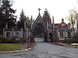 The gatehouse entrance to Forest Hill Cemetery in December 2014 | |
