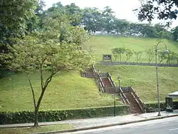 The park overlooks Orchard Road and is set in the heart of the Civic and Cultural District of Singapore, and it now offers a variety of recreational activities as well as historical, educational, entertainment and cultural experiences, and is also used as a place for social events.[26] The park also serves as an important green lung for Singapore's downtown city area. The unique blend of historical relics, lush greenery and expansive lawns has made Fort Canning a hub of cultural and artistic activity. It has been a venue of choice for staging myriad outdoor events and activities like theatre carnivals such as Shakespeare in the Park by SRT, art festivals, starlight cinemas and Ballet Under the Stars performances.[27] WOMAD, Singapore's largest music festival, was a regular feature of the park's calendar of events from 1998 to 2007.[28] The Fort Canning Tunnel passes directly under the hill.[29]
