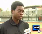 Frédéric Hanvi giving a TV interview in France after signing his Minor League contract