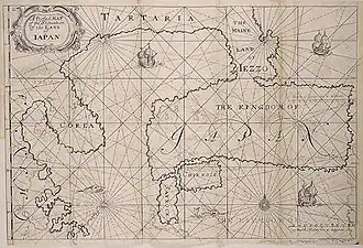 A map of Japan in François Caron's "A True Description of the Mighty Kingdoms of Japan and Siam".