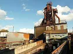 After the war, de Wendel installed an electric bloom-preheating oven at Moyeuvre-Grande, followed by a powerful continuous billet train, and began a complete overhaul of the blast furnaces along the lines of the successful model at Hayange, but with a more powerful type of blast furnace that processed 400 tons daily of minette. At Jœuf, where the Germans had completely dismantled the factory before their retreat, an enormous reconstruction task was undertaken very quickly, with the blast furnaces completely overhauled as at Moyeuvre. All the trains were then electrified. The Wendel plants were among the first to be electrified, using large gas-powered turbines, and a network of gas pipes was installed linking the plants.[8]