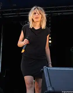 The French performance featured Amandine Bourgeois on stage wearing a grey dress and black high heels designed by French designer Jean-Claude Jitrois and performing the song at a microphone stand. The stage colours were predominately red with red, yellow and orange lighting and the stage projections displayed flames and steam on a black background. About the performance and song, France 3 entertainment director Marie Claire Mezerette stated: "In this case simplicity is the key. It is a simple, but still powerful rock love song. We don't need to make it complicated. She wants to express how angry she is with what happened in that love story, Amandine is singing about."[14][15] Amandine Bourgeois was joined on stage by three backing vocalists: Fanny Llado, Guillaume Eyango and Judith Flessel-Toto.[16] France placed twenty-third in the final, scoring 23 points.[17]