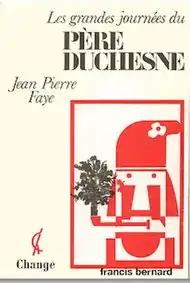 In 1981, Francis Bernard creates a graphic series based on the character Père Duchesne. This will be shown for two months at the Centre Pompidou in Paris.[2] The series is a collection of 150 drawings and paintings and constitutes the « Théâtre pictural du Père Duchesne ». It is inspired by the Jean-Pierre Faye play, Les dernières journées du père Duchesne, which uses historical material from the revolutionary newspaper Le Père Duchesne. Twenty two panels of this series are also presented at the French-Italian Cultural Center, during the biennial Venice carnival on the theme "The masks of Marat".