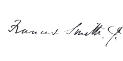 Francis Smith senior (5 November 1787– 8 September 1855) was born in Nevis, the son of the ships’ carpenter Francis Smith (? – January 1790)[7] and his common-law wife Amelia Brodbelt (? – May 1817).[8][9] Described as a ‘mulatto’, in March 1765 Amelia Brodbelt had been freed from enslavement by Frances Brodbelt of Nevis.[10] Frances was the unmarried sister of the Nevis planter James Brodbelt who was Amelia Brodbelt’s father.[11] Throughout her life, Amelia was known as a ‘free coloured woman’.[12][13]
