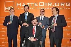 A former member of the national executive of the UCD Youth Wing,[4] Marhuenda joined the People's Party (PP) in 1995, and became a member of the Parliament of Catalonia after the 1995 Catalan regional election.[5] He resigned to his seat in 1996, to become chief of staff of the Minister of Public Administrations, chief of Staff of the Minister of Education and Culture in 1999, and director general of Relation with the Cortes in 2000, always under the aegis of Mariano Rajoy.[5]