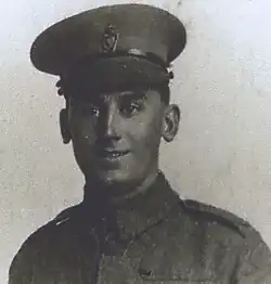Edwards was born into a working-class family in Chelsea, London.[2] He married, but his wife and child both died in 1913.[3] On the outbreak of the war in August 1914 he was working as a stationer's assistant, but promptly enlisted in the 1st Battalion, London Irish Rifles,[4] who were based at the Duke of York's Barracks on the King's Road, Chelsea.[5] A keen footballer, Edwards soon became captain of his battalion's football team, and led them to victory in the Brigade Final, only days before they were sent to France in March 1915.[2]