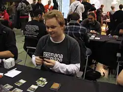 Frank Karsten (born 19 June 1984[1]) is a Dutch Magic: The Gathering player. His achievements include three Pro Tour Top 8 appearances, including a second-place finish at the 2005 World Championships, and seven Grand Prix Top 8s. He is a member of the Magic: The Gathering Hall of Fame.[7] Karsten is considered one of the game's foremost analytical minds and writers.[8] He has since been considered mostly retired from Magic pro play, and has become a writer for Wizards' Magic event coverage.