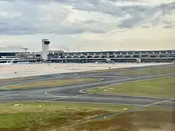 The southern side of the airport ground was home to the Rhein-Main Air Base, which served as a major air base for the United States from 1947 until 2005, when the air base was closed and the property was acquired by Fraport (now occupied by Terminal 3). The airport celebrated its 80th anniversary in July 2016.[12]