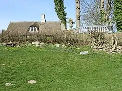 The garden was redesigned by Professor Christian Elling and his wife, the sculptor Gertrud Sadolin Elling, during their ownership in the 1960s. It includes a balustrade lined with elm trees and stone vases from the demolished Hirschholm Palace in Hørsholm.[1]