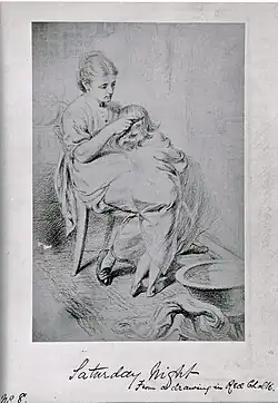 On 15 August 1874 in Manchester, Shields married Matilda Booth (b. 1856), known as Cissy, a young girl who used to be his model. Her family and Shields's friends had been concerned about the relationship between the 18 year old girl and forty one year old man but the marriage was considered surprising.[1] Shields soon left for a trip to Europe and in 1875 left his new young wife at a boarding school in Brighton run by Margaret Alexis Bell and Mary Bradford. He had been a regular visitor to their previous school Winnington Hall with other Pre-Raphaelite artists.[14]