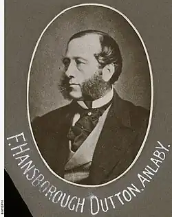 Frederick Hansborough (sometimes Hansbrow) Dutton was born on 2 April 1812 at Colne, Lancashire, and was baptised at St. Bartholomew's Church, Colne, on 25 May 1813.[1]