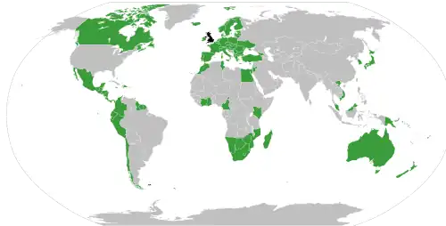 As of December 2024, the United Kingdom has 39 active free trade agreements with nations and trade blocs, covering 102 countries and territories.[3][1] Five of these are 'new' trade agreements, such as with Australia and New Zealand.[4] The UK is also a member of the Comprehensive and Progressive Agreement for Trans-Pacific Partnership. The remaining 33 are continuity agreements. Furthermore, the UK has a customs union with its three Crown Dependencies.[5] The UK has further arrangements covering free trade with its 14 British Overseas Territories.[6]